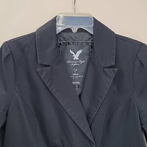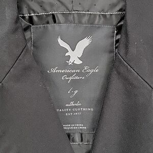 The American Eagle black blazer offers a stylish tailored silhouette with classic large buttons. - Fabric: Cotton outer, polyester lining