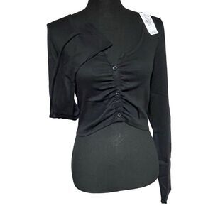 American Eagle Black Button Cinched Front Cropped Cardigan
