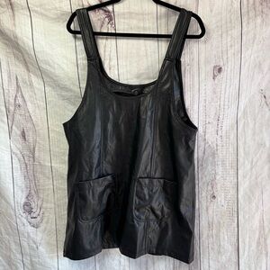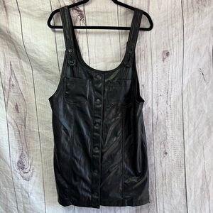American Eagle Black Button-Front Vegan Leather Overall Dress Large