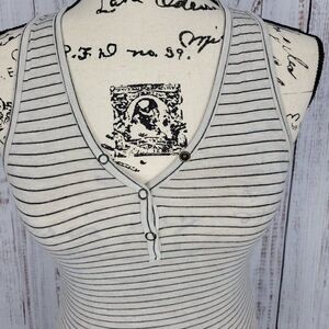 Item: American Eagle Black & Cream XS Stretchy Chic Striped Button Tank Top Bodysuit. Great for layering!