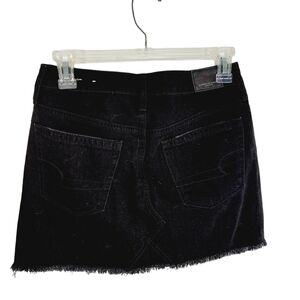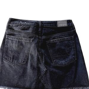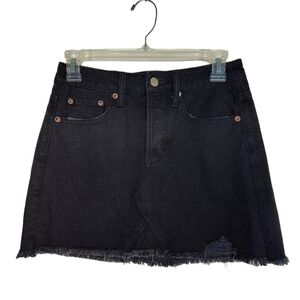 American Eagle Black Denim Mini Skirt Button Fly Fringe Distressed Size 0 NWOT
