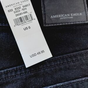 American Eagle Black Denim Mini Skirt Button Fly Fringe Distressed Size 0 NEW WITHOUT TAGS
