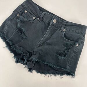 American Eagle Black Distressed Cut Off Hi Rise Festival Stretch Shorts Size 4