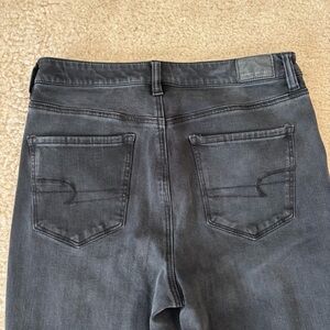 American Eagle Black Distressed Denim Jeans, front and back pockets, zipper/button closure, great condition!