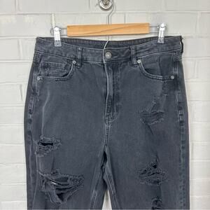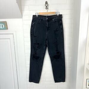 American Eagle Black Distressed Denim Mom Jeans Size 10
