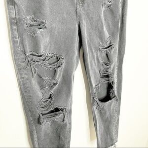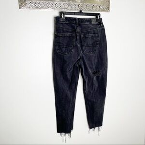American Eagle Black Distressed Hem Straight Leg High Waist Black Jeans Size 4