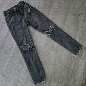 American Eagle Black Distressed Mom Jeans Women’s Size 0 High Rise Ripped Knee