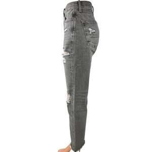 American Eagle Black Distressed Real Good High Waist Cropped Mom Denim Jeans 0