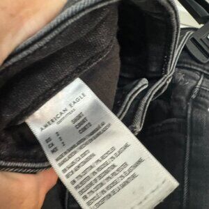 Trendy and versatile American Eagle black distressed skinny jeans.