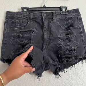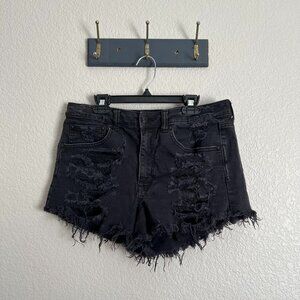 American Eagle Black Distressed Vintage Hi-Rise Festival Shorts Women 8 Stretch!