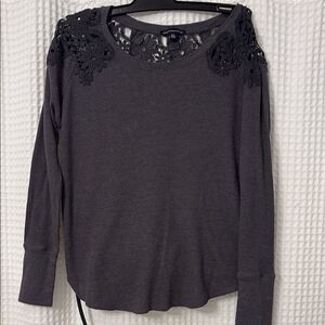 American Eagle Black Embellished Blouse with Long Sleeves Size SM