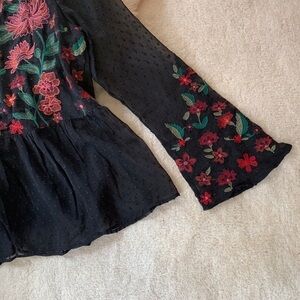 ❤️Lovely American Eagle💕Black Embroidered Floral Swiss Dot