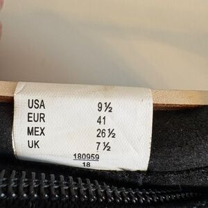 Newish! Very lightly worn. Black faux suede with a lattice like pattern. No scuffs on heals. Zippers work as they should.
