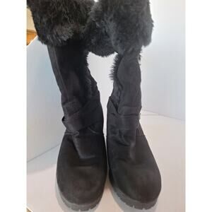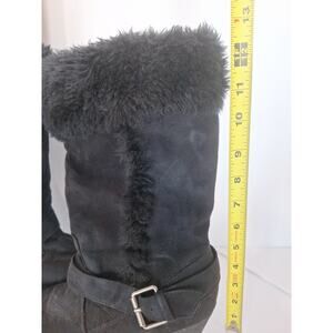 American Eagle Black Faux Suede Wedge Boots Women’s 9.5 Fur Trim Buckle