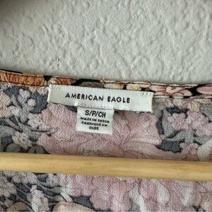 American Eagle Black Floral Wrap Blouse Women’s Size Small Romantic Boho