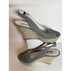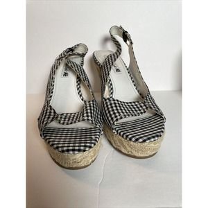 American Eagle Black Gingham Slingback Buckle Wedge Espadrilles Sandal Size 9