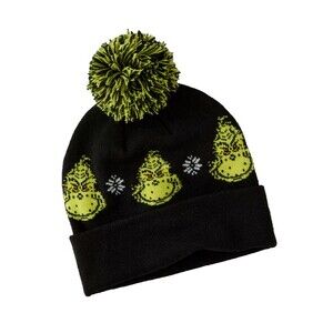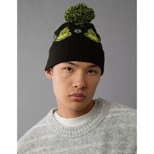 Brand new w/ tags. AE Grinch black and green beanie give your chilly weather 'fit a creepy touch with a pom pom top and Grinch touches.