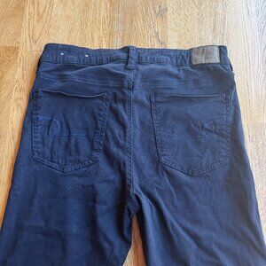 American Eagle black hi rise jeggings. Stock photo provided for style and fit reference. Size 8 regular. Maybe not a perfect dark black but overall in great used condition! In some lights they almost look like a dark navy but I think they are black. 53% cotton, 24% viscose, 19% Tencel Lyocell, 4% elastane. "Super Stretch".
