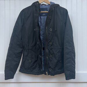 American Eagle Black Hooded Jacket Women's Medium Button Front Winter Coat