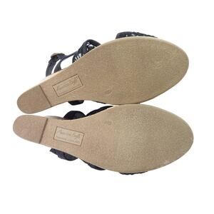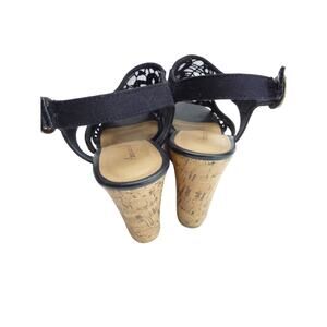 American Eagle Black Lace Sling Back Cork Wedge Sandal - Size 9, Women's Shoes