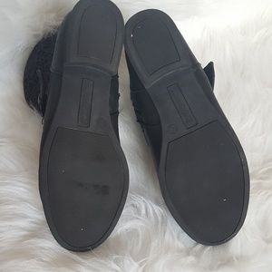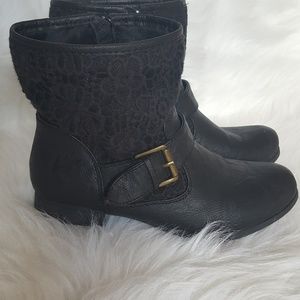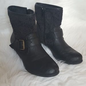 American Eagle Black Lace Slouch With Side Buckle Ankle Zip Boots size 5.5M