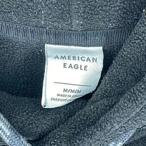 American Eagle Black On Black Fleece Pullover Hoodie Sweatshirt Size Medium