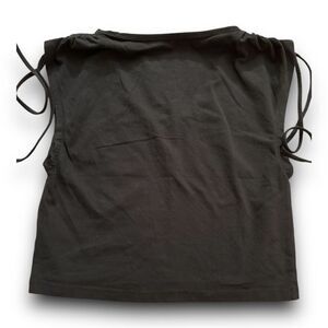 American Eagle Black Ruched Sleeve with Strings Crop Muscle Tee Size Medium