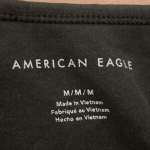Brand new with no tag attached AE crop top tee has strings at the ruched shoulders. Soft cotton and elastane blend provides stretch. Black size medium.
