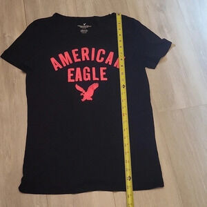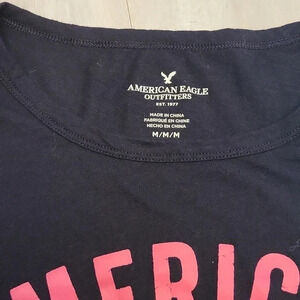 American Eagle Black Short Sleeve Pink Logo Tee Womens Size M