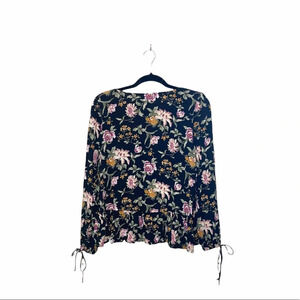 American Eagle Black Synthetic Tie Front Floral Print Top Medium Women’s