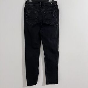 American Eagle Black Vintage Hi Rise Jeans Size 4 Regular Distressed Raw Denim