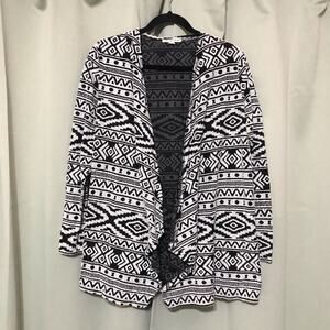 American Eagle Black & White Aztec Print Cardigan - featuring a unique knit aztec pattern throughout, light weight and comfortable. In excellent condition!
