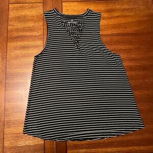American Eagle Black White Pinstripe Sleeveless Soft & Sexy Tank Size Large