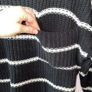 American Eagle black & white striped knit sweater. In excellent condition! Crew neckline. Long sleeves. Front pocket. Chunky knit material. Semi-sheer. Black with small white stripes. Size medium.