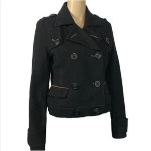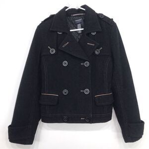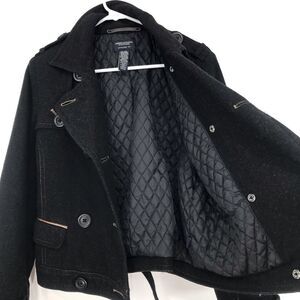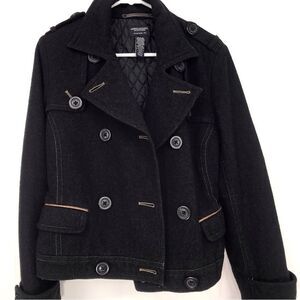 American Eagle Black Wool Blend Double Breasted Button Short Cut Pea Coat