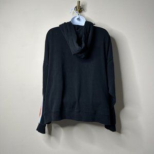 American Eagle Black/Rainbow Striped Hoodie Women's Large
