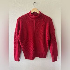 American Eagle Block Knit Red Heathered Oversized Cowl Neck Sweater Size XS