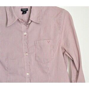 American Eagle Blouse Size 6 Purple Pink & White Pinstripes Long Sleeves