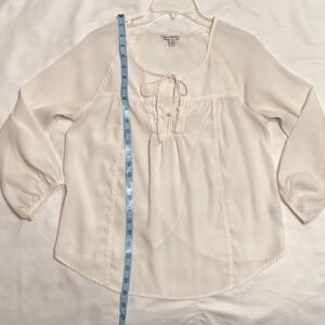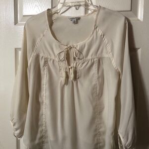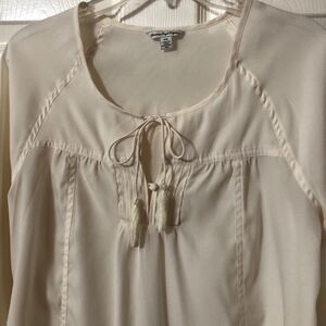American Eagle Blouse Size Medium Cream Three Quarter Sleeves Split Back Design