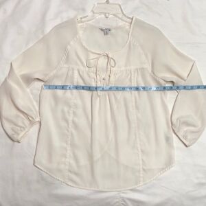 American Eagle Blouse Size Medium, Cream Three Quarter Sleeves, Split Back Design, see measurements for size