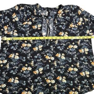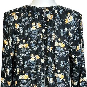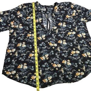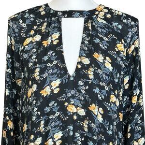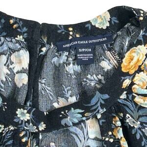 American Eagle Blouse Size Small Keyhole Neck Black Cream Floral Button Back Top