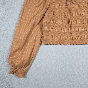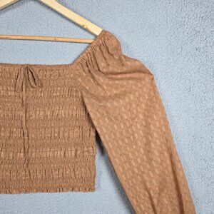 American Eagle Blouse Top Womens Medium Brown Smocked Cropped Peasant Picnic NWT