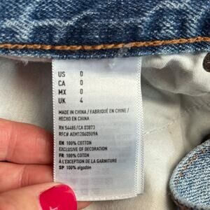 American Eagle Blue Denim Button Fly Distressed Raw Hem Mini Skirt Women's Sz 0
