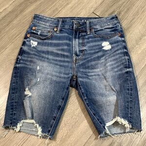 American Eagle Blue Distressed Straight Leg Stretch Denim Shorts size 28