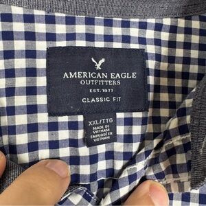 American Eagle Blue Gingham Print Button Down Shirt Size XXL