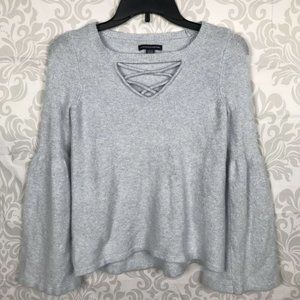 American Eagle Blue Lace Up Bell Sleeve Sweater. Soft light sweater.