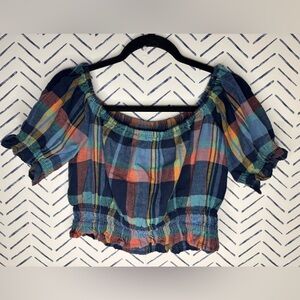 Tags: short sleeve, crop top, plaid, summer, linen, festive, beach, casual, coquette, boho, free people, pilcro, Anthropologie, jcrew