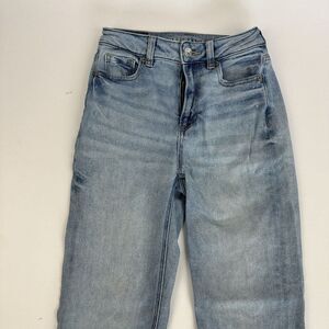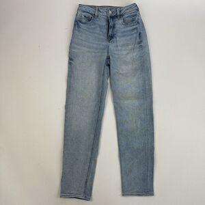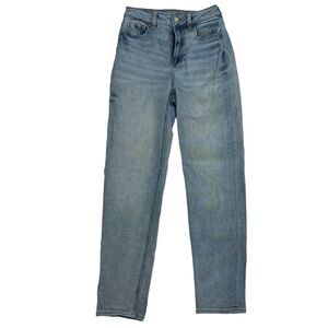 American Eagle Blue MOM STRAIGHT JEAN Denim Stretch Blue Sz 000 Reg Stretch