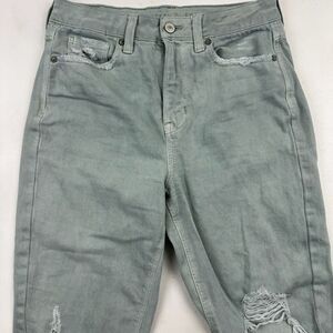 American Eagle Blue MOM STRAIGHT JEAN Denim Stretch Sz 4 Reg Stretch Distressed