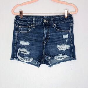 American Eagle Blue Next Level Stretch High Rise Shortie Shorts Size 4